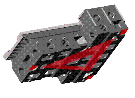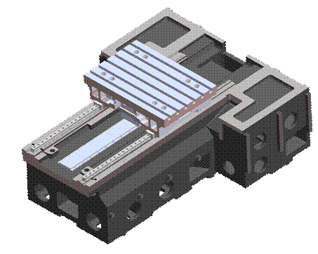 ■ 鞍座結構採階梯式空間設計,左右滑塊加大跨距,加強對頭部鑄件的支撐力及增加與立柱的結合面,強化軸向動態剛性及增加切削剛性。